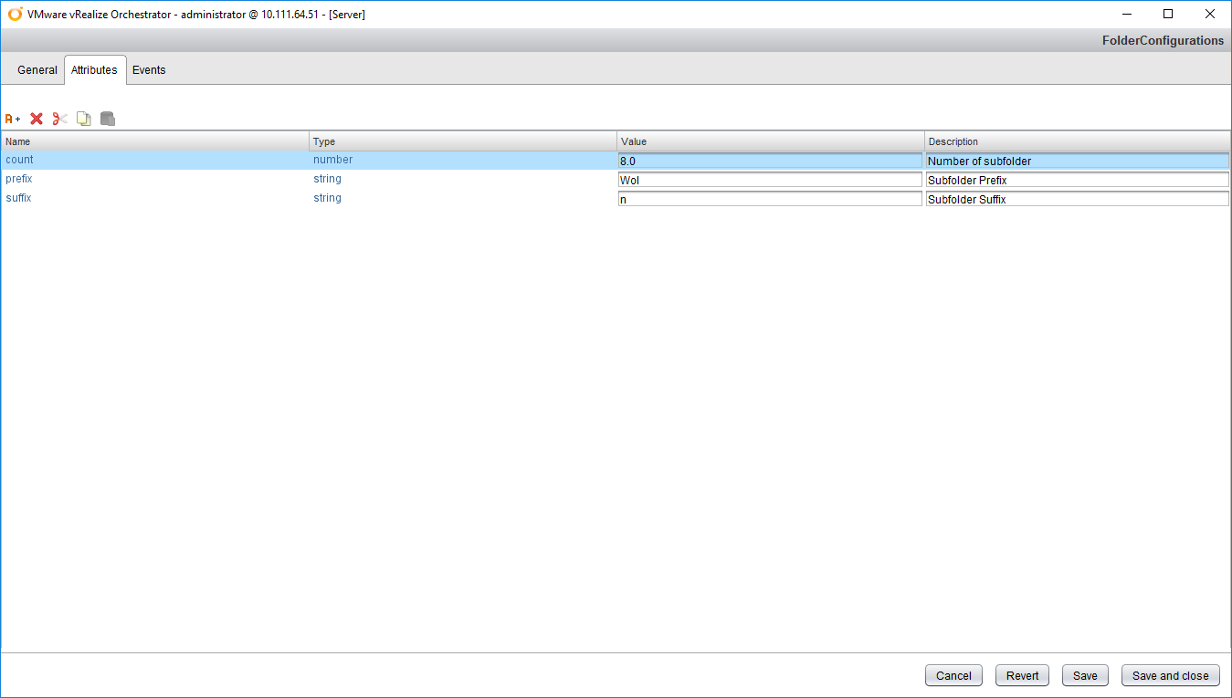 I created a workflow that creates subfolders. The configuration element is not used in this workflow. First let’s run the workflow without using the configuration element. I have listed the description of the attributes below.