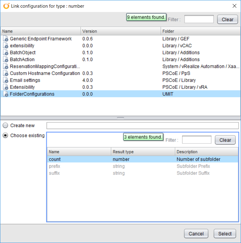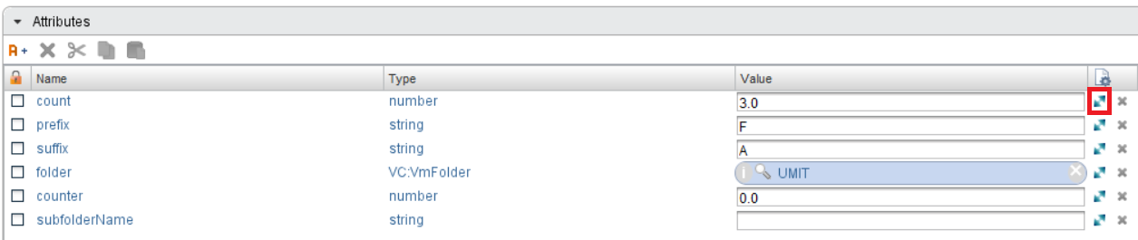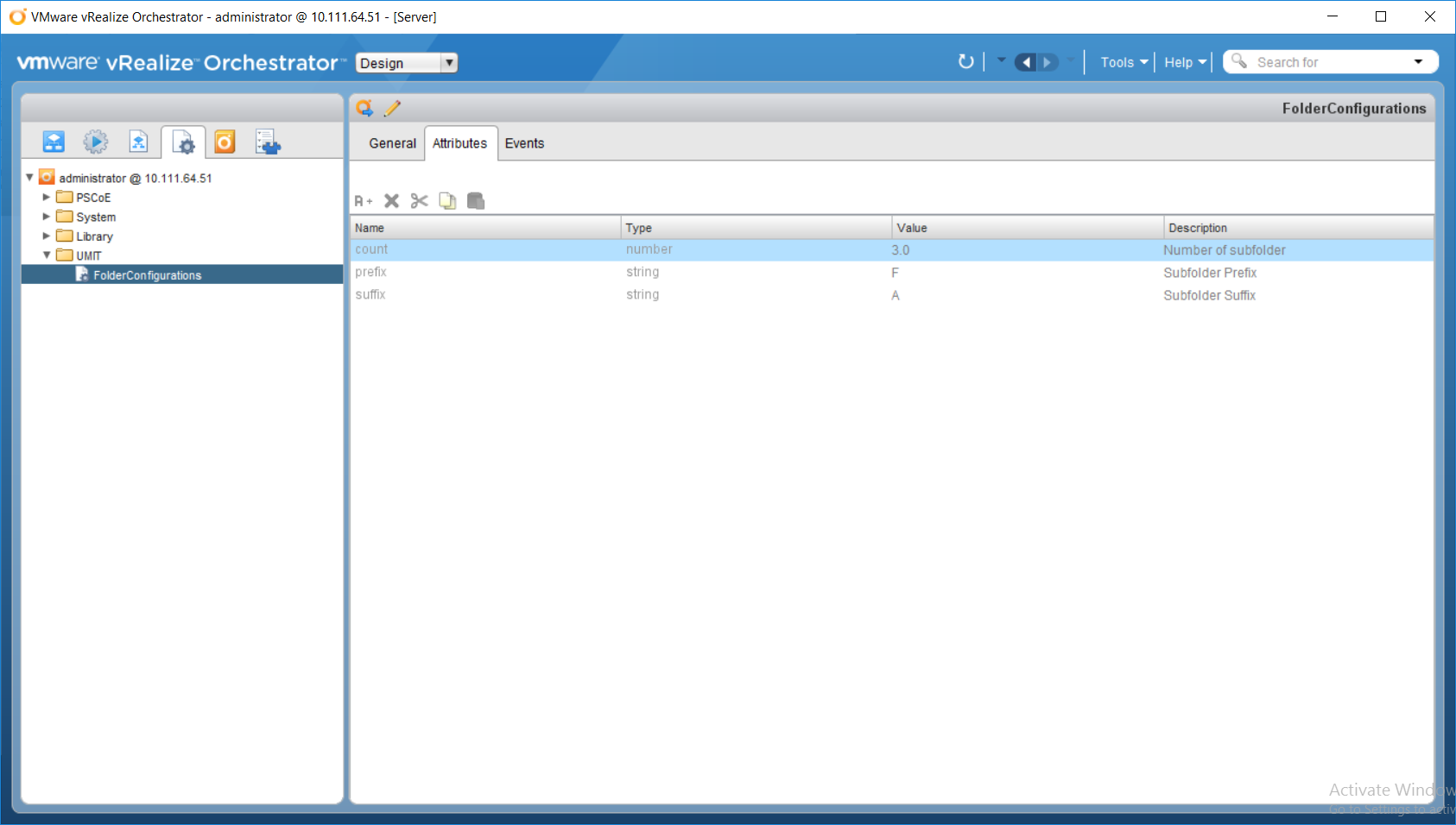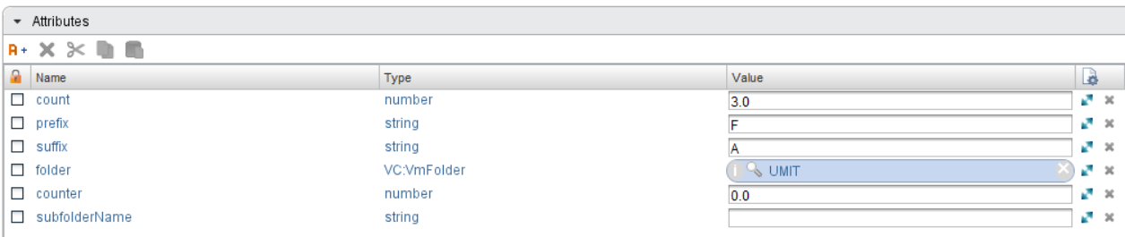 We ran the workflow without using the configuration element. Now let’s create a configuration element and define some of the attributes used in the workflow here. These are the count, prefix, and suffix attributes. Then, we can run the workflow using the configuration element.